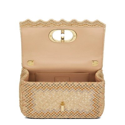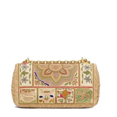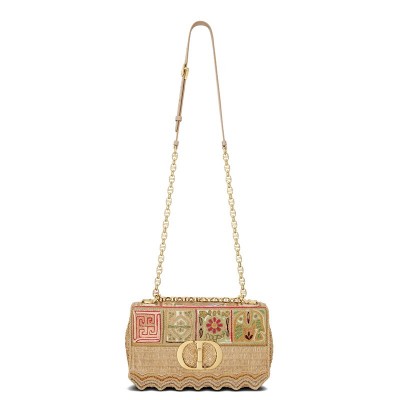 DIOR/迪奥 2021秋冬新款 CARO系列 女士中号彩色刺绣棉布扇形边框CD扭纹扣翻盖封口单肩斜挎包M9249UING_M884